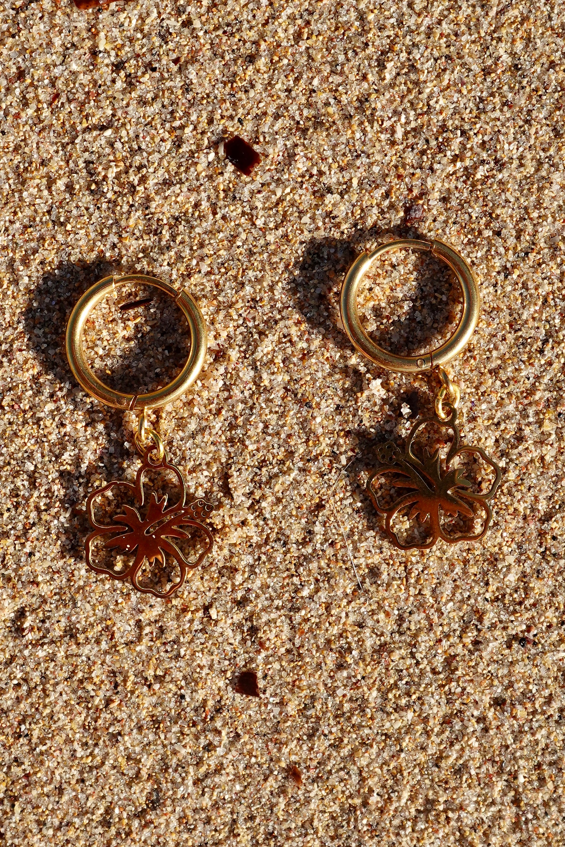 Enhance your style with these elegant golden hibiscus earrings. Made with precision and expert craftsmanship, these chic earrings feature delicate hibiscus flowers symbolizing beauty and grace. Made to elevate any outfit, these earrings make the perfect accessory for any occasion.